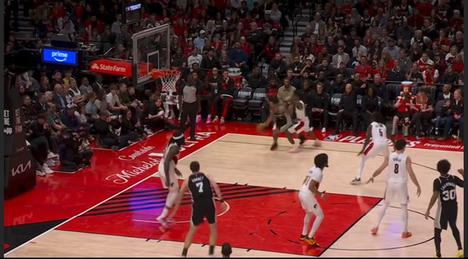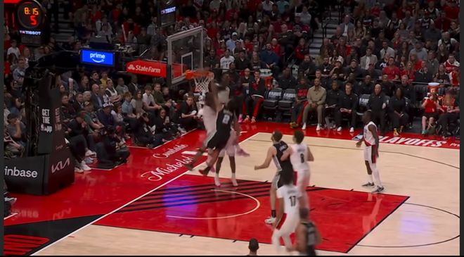 马刺对阵开拓者系列赛第三场,比赛第四节还剩8分18秒。